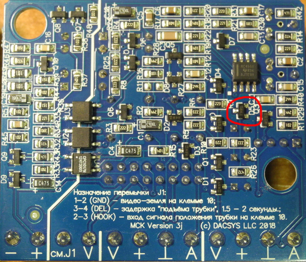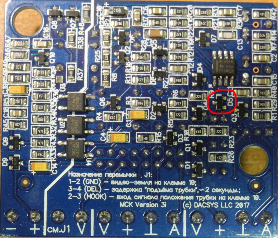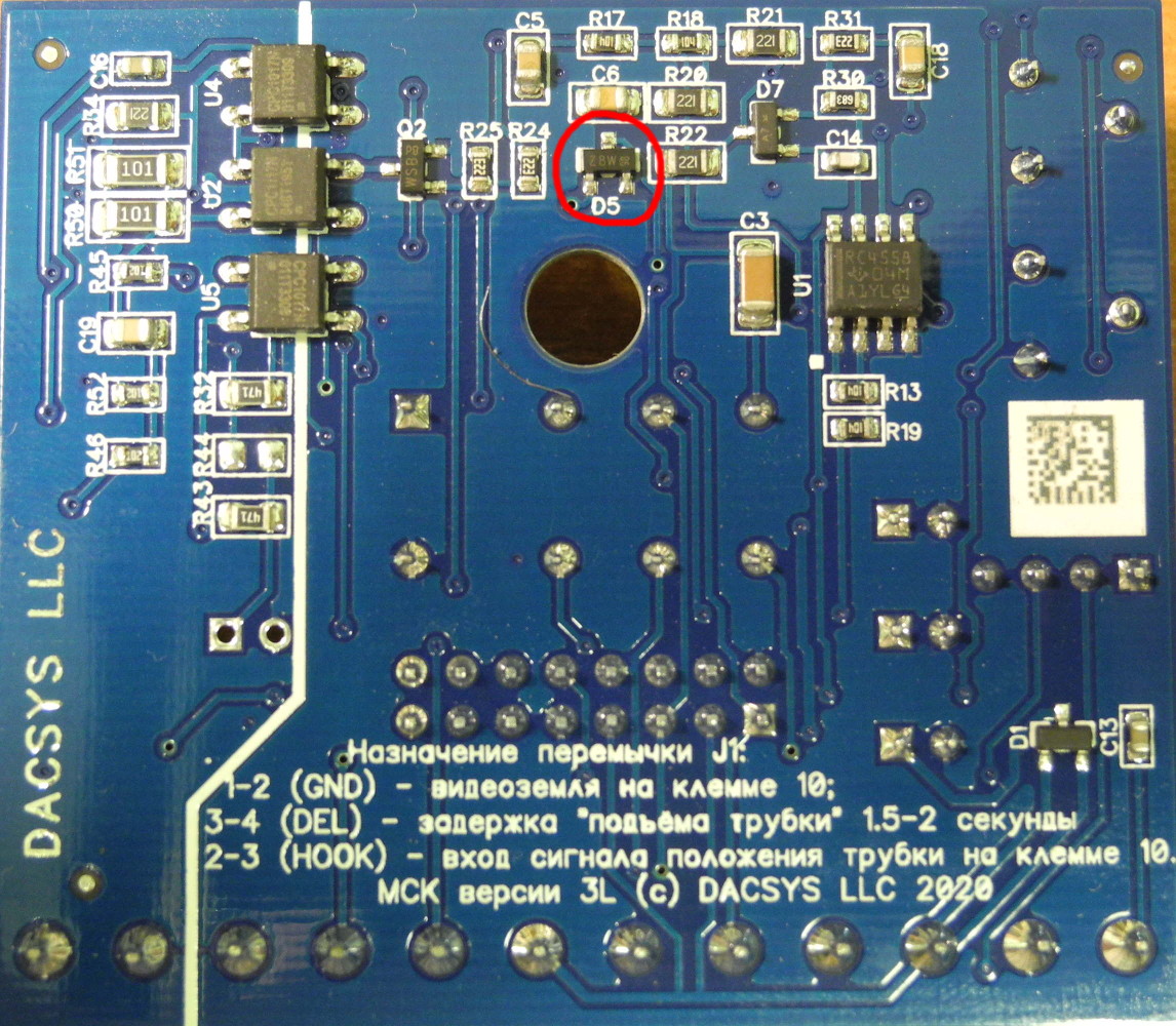 Таким образом, для изменения порога срабатывания "открывалки" модуля сопряжения, надо заменить этот стабилитрон на аналогичный, с другим номиналом - например, BZX84C8V2 (8.2v), BZX84C7V5 (7.5v). Можно использовать стабилитроны и других марок, но тогда нужно будет разобраться с их распиновкой. Увлекаться понижением не советую - из-за опасности ложных срабатываний при громких звуках и переходных процессах в аудиотракте при включении/выключении микрофона. Определите уровень команды для Вашего видеодомофона, вычтите из него один вольт и подберите ближайший номинал необходимого Вам стабилитрона.